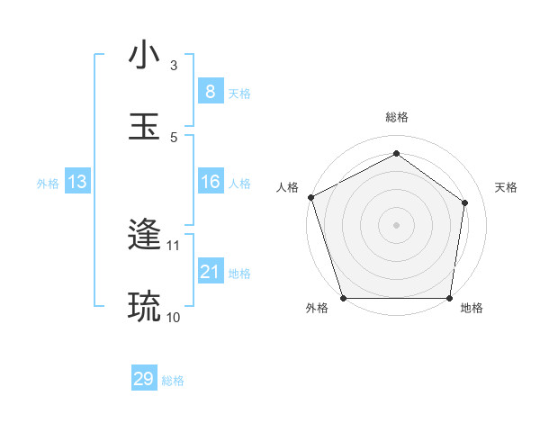 小玉 逢琉さんを姓名の画数から五運を鑑定