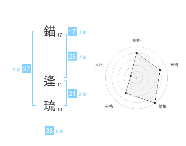 錨 逢琉さんの天格は17画の4点!