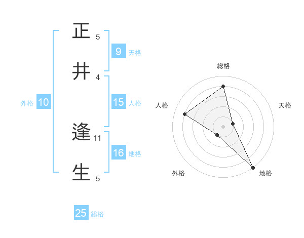 正井 逢生さんの地格は16画の5点!