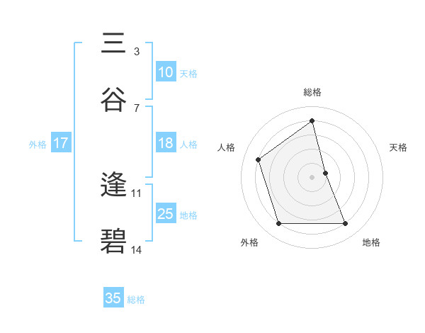 三谷 逢碧さんを姓名の画数から五運を鑑定