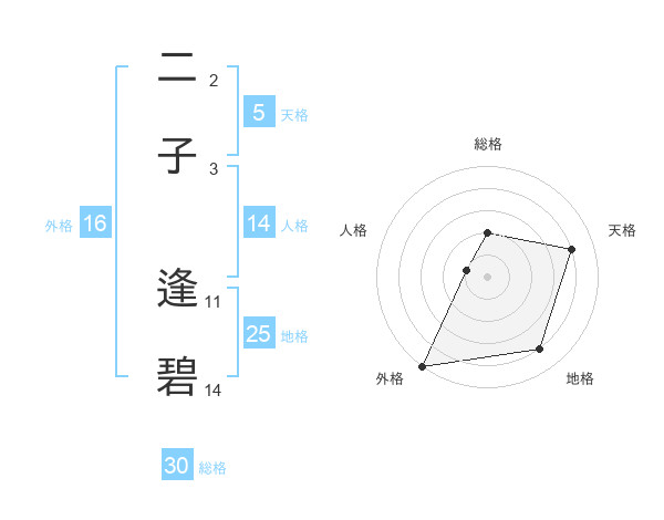 二子 逢碧さんの天格は5画の4点!