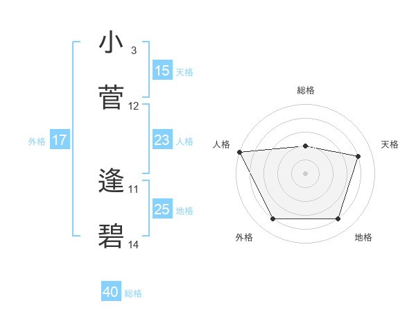 小菅 逢碧さんを姓名の画数から五運を鑑定