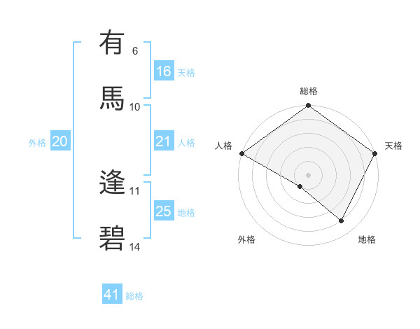 有馬 逢碧さんの外格は20画の1点!