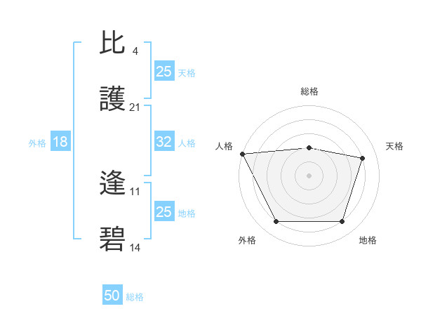 比護 逢碧さんの天格は25画の4点!