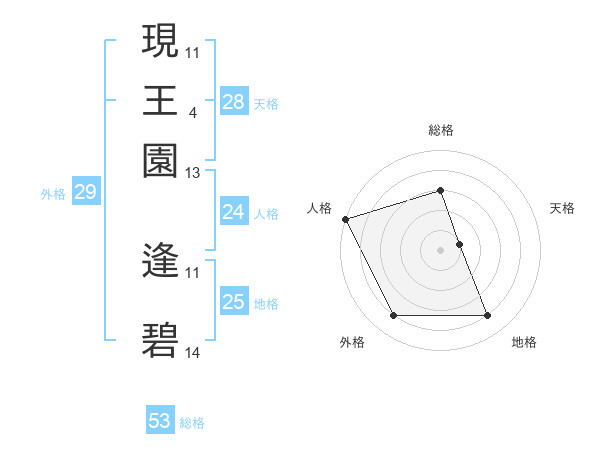 現王園 逢碧さんの外格は29画の4点!