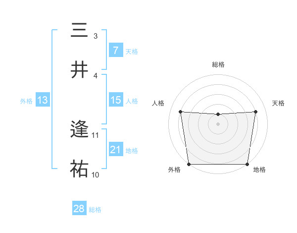 三井 逢祐さんの地格は21画の5点!