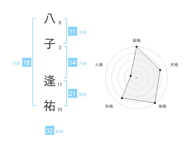 八子 逢祐さんの天格は11画の4点!