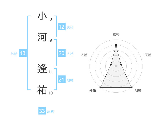 小河 逢祐さんの総格は33画の4点!