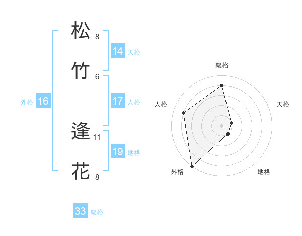 松竹 逢花さんの天格は14画の1点!