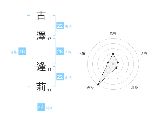 古澤 逢莉さんの外格は16画の5点!