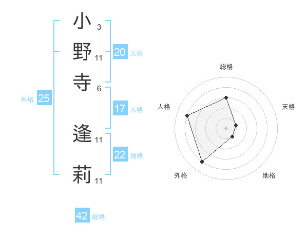 小野寺 逢莉さんの天格は20画の1点!