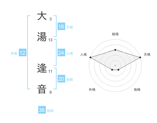 大湯 逢音さんを姓名の画数から五運を鑑定