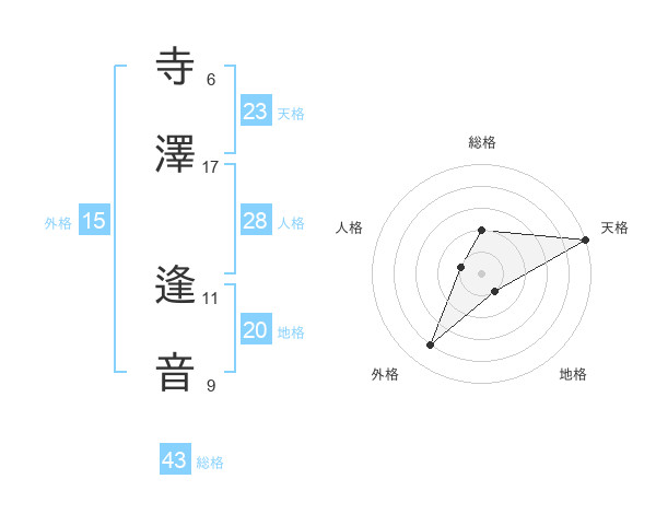 寺澤 逢音さんの天格は23画の5点!