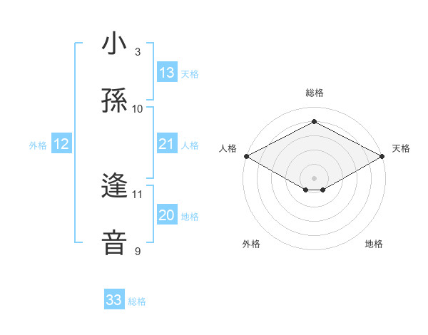 小孫 逢音さんの天格は13画の5点!