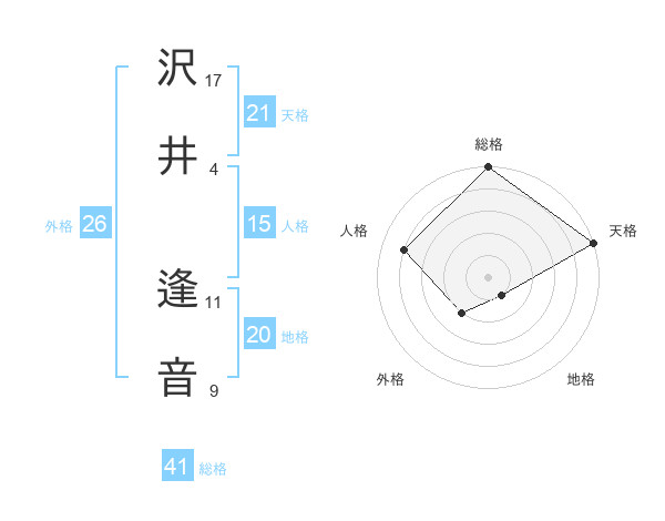 沢井 逢音さんを姓名の画数から五運を鑑定