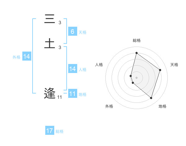 三土 逢さんの総格は17画の4点!