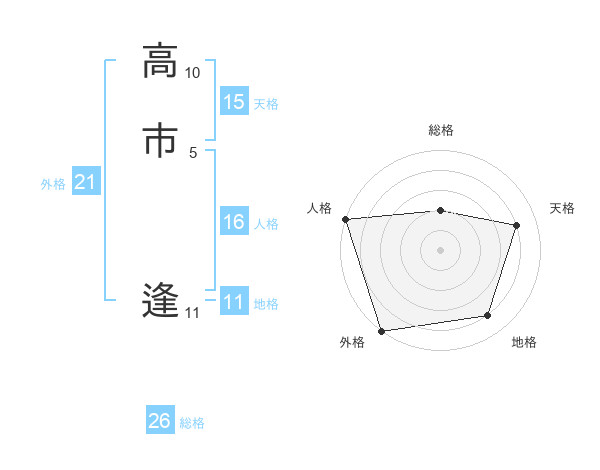高市 逢さんの天格は15画の4点!