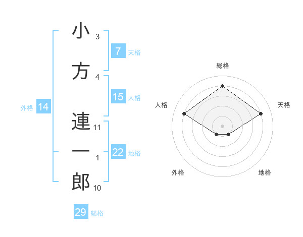 小方 連一郎さんを姓名の画数から五運を鑑定