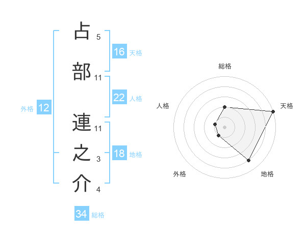 占部 連之介さんの天格は16画の5点!
