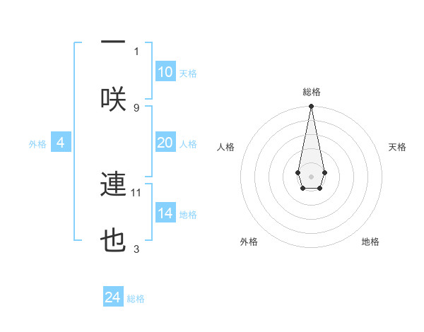 一咲 連也さんの総格は24画の5点!