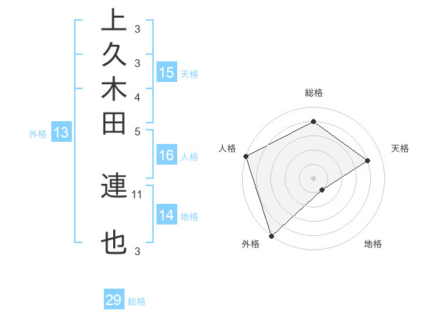 上久木田 連也さんを姓名の画数から五運を鑑定