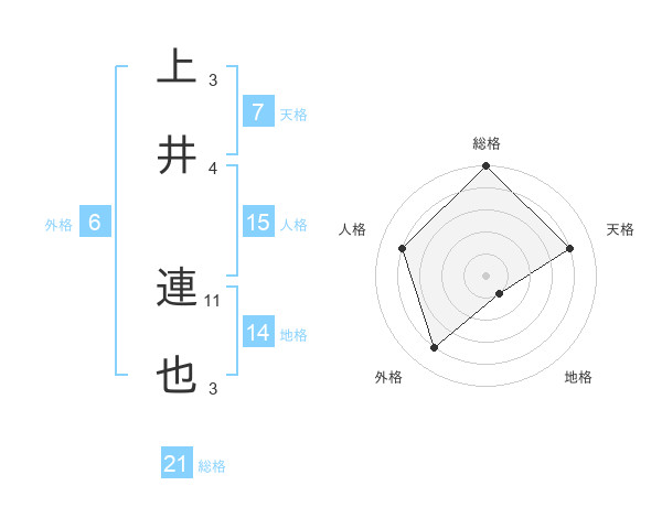 上井 連也さんの総格は21画の5点!