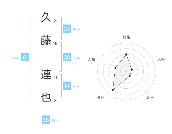 久藤 連也さんの総格は36画の3点!