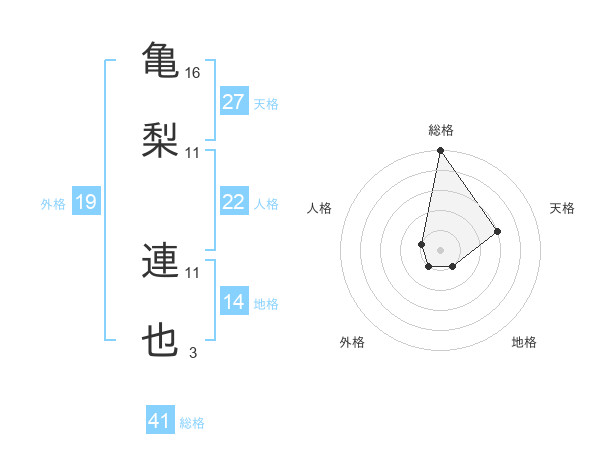 亀梨 連也さんの総格は41画の5点!