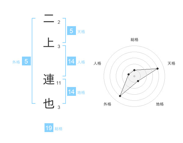 二上 連也さんの天格は5画の4点!