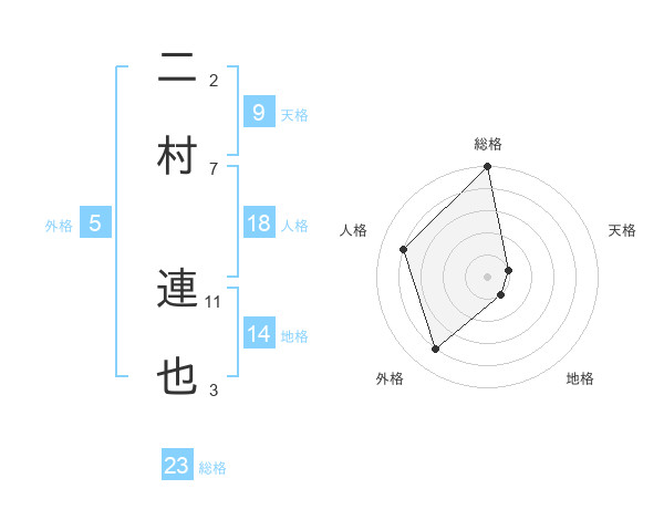 二村 連也さんの総格は23画の5点!