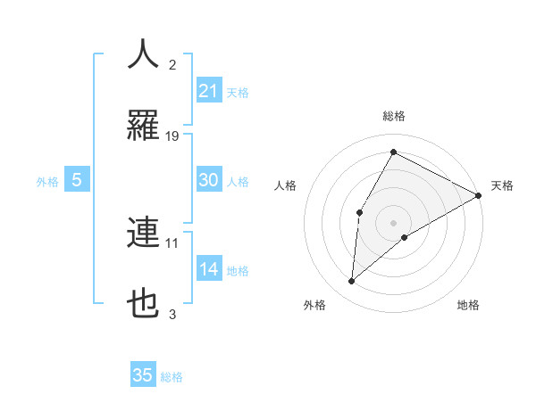 人羅 連也さんの総格は35画の4点!