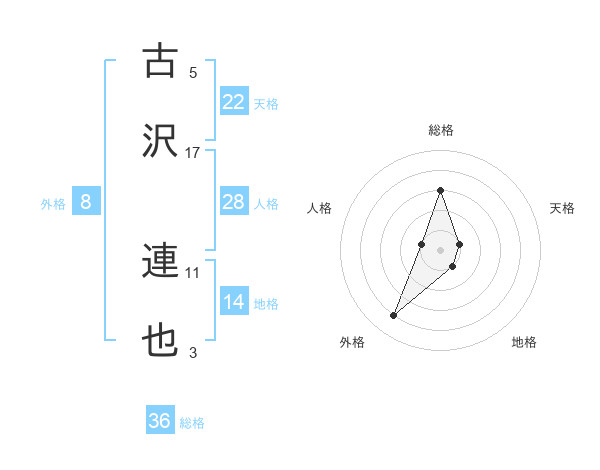 古沢 連也さんを姓名の画数から五運を鑑定