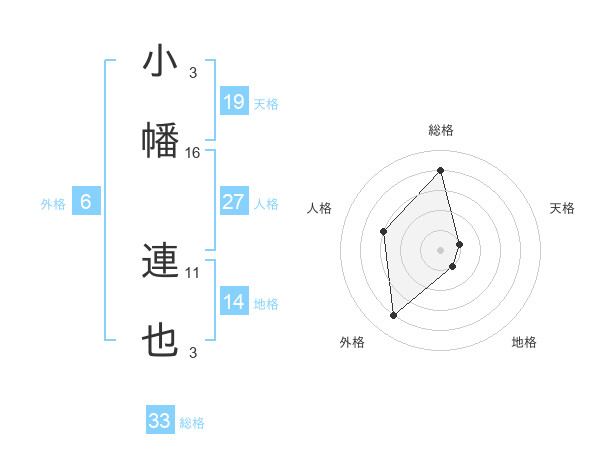 小幡 連也さんの天格は19画の1点!
