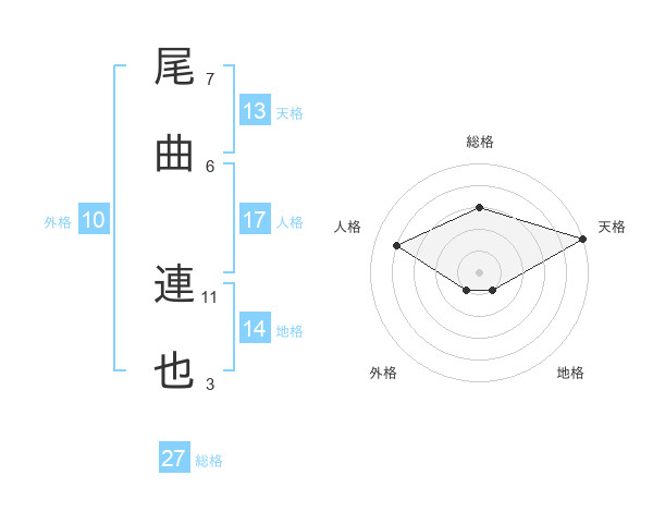 尾曲 連也さんを姓名の画数から五運を鑑定