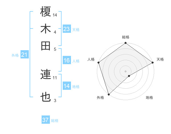 榎木田 連也さんの総格は37画の5点!