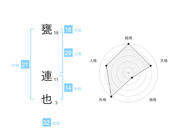 甕 連也さんの総格は32画の5点!