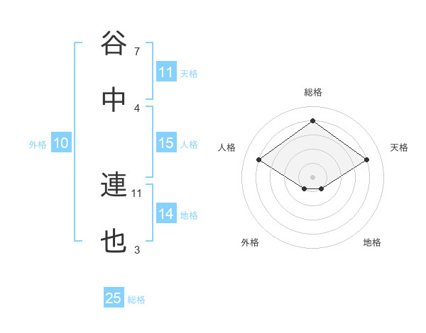 谷中 連也さんの総格は25画の4点!