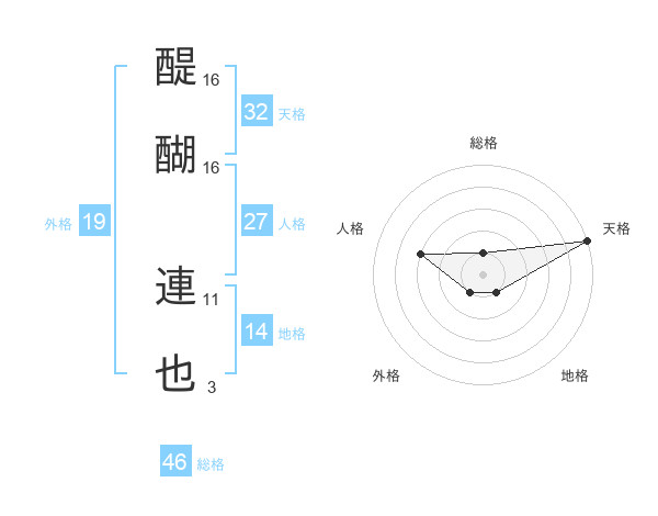 醍醐 連也さんを姓名の画数から五運を鑑定