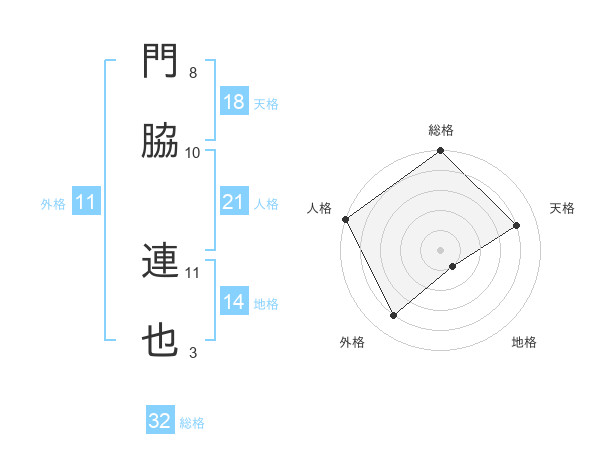 門脇 連也さんの総格は32画の5点!
