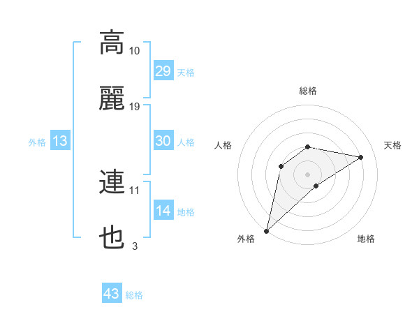 高麗 連也さんの外格は13画の5点!