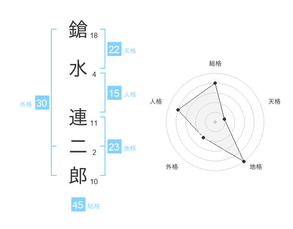 鎗水 連二郎さんの総格は45画の4点!