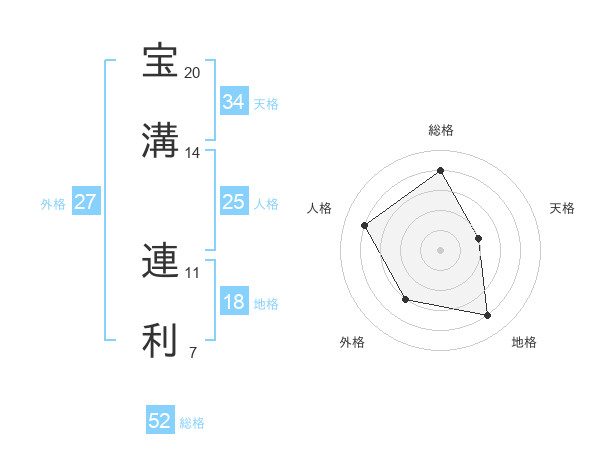宝溝 連利さんを姓名の画数から五運を鑑定