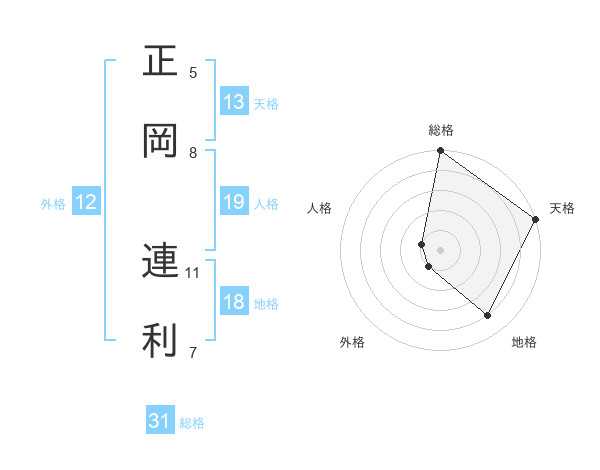 正岡 連利さんの天格は13画の5点!