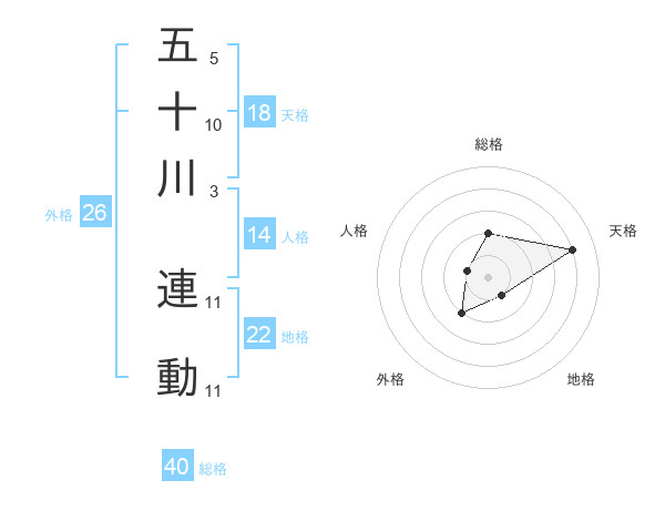 五十川 連動さんの総格は40画の2点!