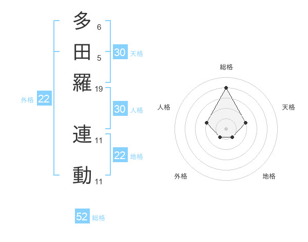 多田羅 連動さんの総格は52画の4点!