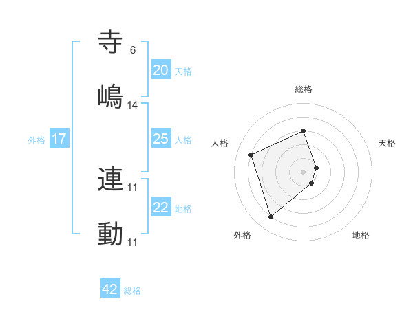 寺嶋 連動さんの総格は42画の3点!