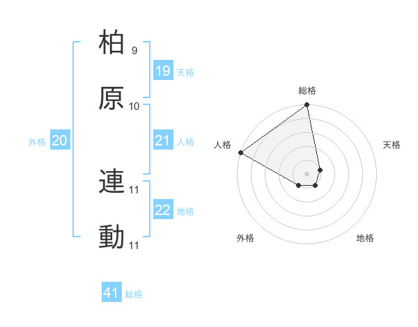 柏原 連動さんの地格は22画の1点!