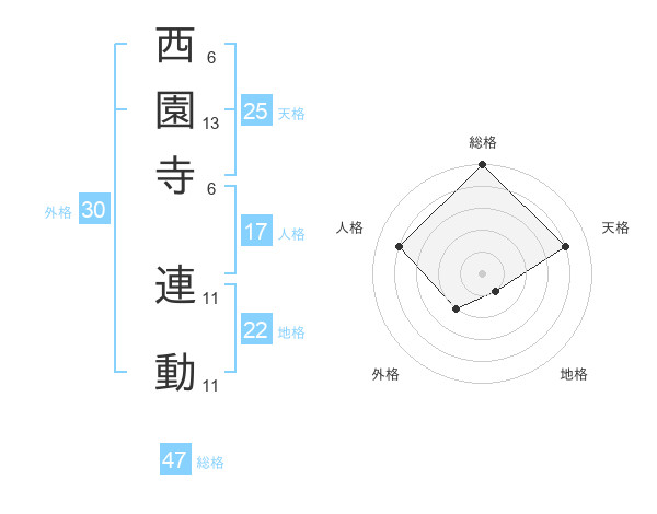 西園寺 連動さんを姓名の画数から五運を鑑定