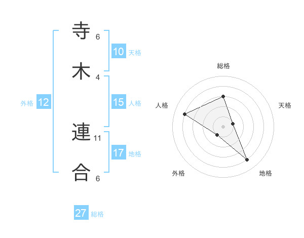 寺木 連合さんの総格は27画の3点!