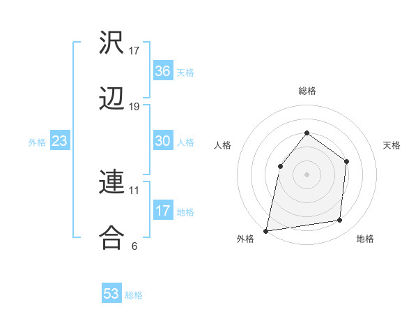 沢辺 連合さんを姓名の画数から五運を鑑定